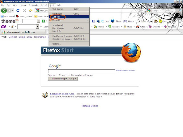 1. klik Tool pada halaman mozila anda dan pilih Add ons:2.Lanjutkan dengan meng-klik Pada LOGO $ yang di lanjutkan dengan
