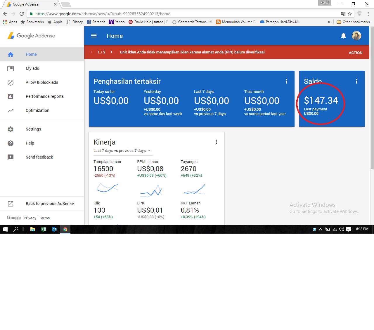 Nah untuk waktu waktu sekarang ini memang untuk pendaftaran google adsense di perketat, ga seperti dulu pas saya daftar 2 hari udah bisa, tp saya lupa dan ga ngeh kalo saya punya google adsense, sampai kemarin saya baca blognya kang iwanbaran bahas kek gituan iseng iseng buka, ternyata ada duitnya 147 dollar dan kondisi nunggu pin karna saya baru pindah alamat