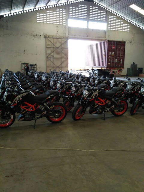 grendaseba666.blogspot.com-Info terbaru dari KTM, bahwa KTM berencana mendistribusikan Duke 200 & 250 RC pada senin minggu depan, kemudian unit sudah berada di jawa timur di gudang KTM yang berada di gresik dan sudah masuk dalam tahap persiapan untuk di kirimkan ke dealer dealer,