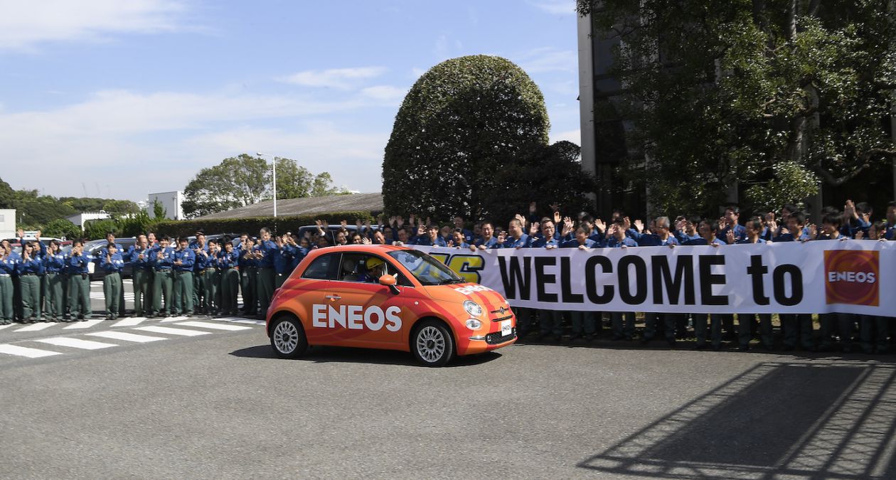 Untuk livery sebenarnya sudah di luncurkan 2 Minggu lalu di yokohama Jepang. The Doctor datang menggunakan mobil Fiat warna Orange berlogo ENEOS. Sementara Motor Lorenzo bagaimana??? Ga ada info, tp sepertinya sih engga, belum ada info update Soalnya.