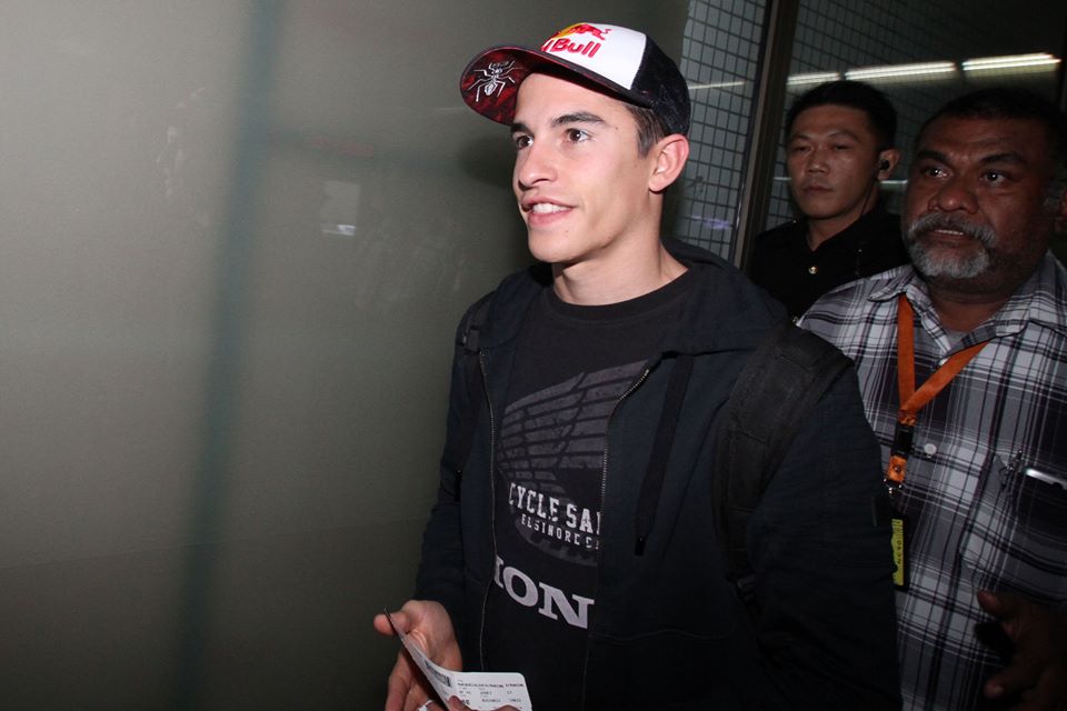 Marc Marquez - Sore, ini pukul 18.35 Pembalap Repsol Honda Marc Marquez mendarat di soekarno hata, seperti di lansir dapurpacu berikut. Kedatangan pembalap ber nomor start 93 ini tidak di dampingi rekan se timnya Dani pedrosa di karenakan yang bersangkutan masih cedera.
