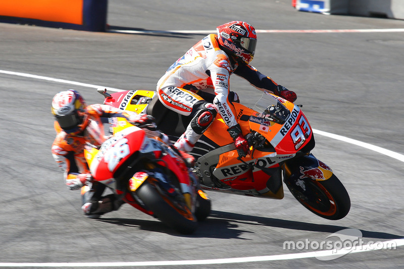 Sama seperti dari HRC mungkin ya "Marquez,, karna kamu udah Juara dunia, kamu boleh sesukanya kamu aja bawa Motor kaya taon taon kmaren" dia menari nari loncat loncat kegirangan,,, sambil nyanyi lalala,,,yeyeye... dan ahirnya "Braaaaakkkk!!!"