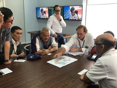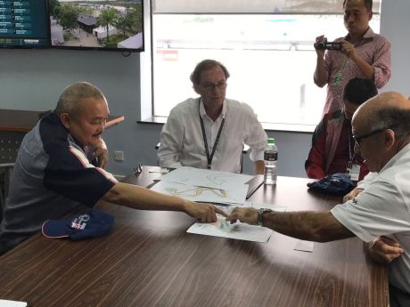 Alex Nurdin sedang Curcol mwengenai layout Jakabaring dengan pak Tile... eh Tilke selaku perancang sirkuit Jakabaring
