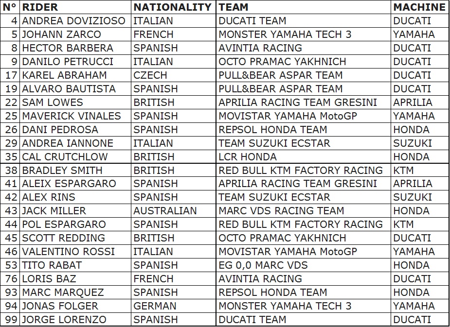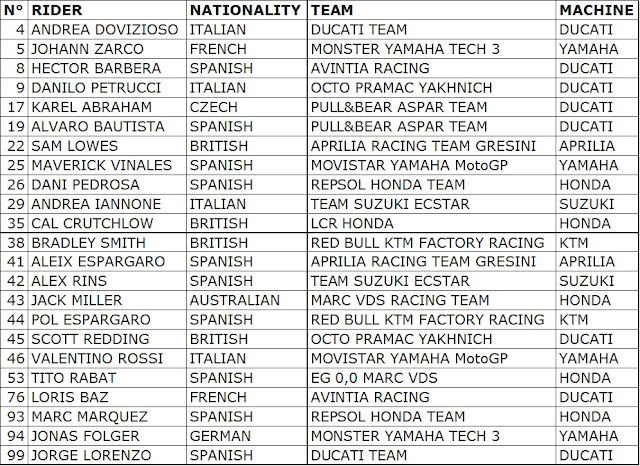 Grendaseba.com-Hari ini secara resmi dorna merilis nama nama pembalap yang akan berlaga di Motogp 2017. Banyak perubahan nama nama rider untuk kelas balap motor paling bergengsi di dunia ini