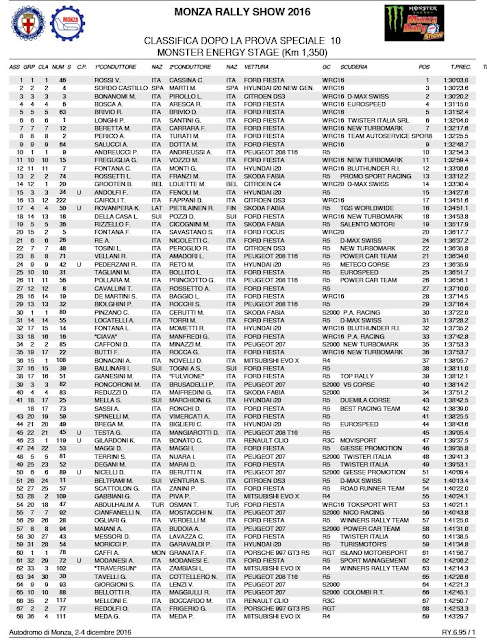Monza Rally diselenggarakan 2-4 Desember 2016 di Sirkuit Autodromo Monza yang bersejarah bagi reli itu sejak penyelenggaraan pertamanya 1978. Dan Valentino Rossi pastinya akan menjadi menjadi perhatian penonton di sana, menantikan apakah Juara MotoGP 9 kaki itu mampu mempertahankan podiumnya.